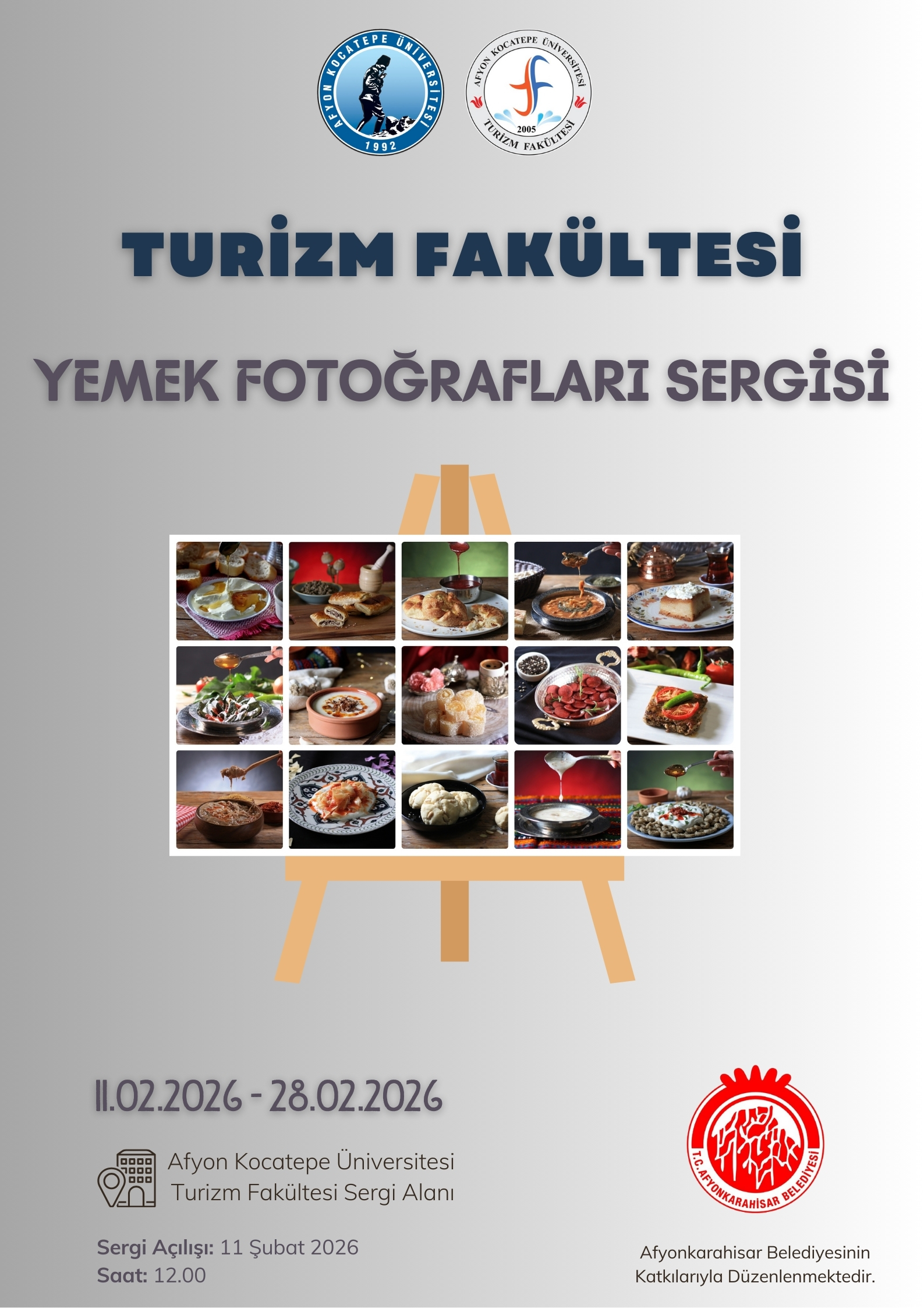 Afyon Kocatepe Üniversitesi Turizm Fakültesi tarafından düzenlenen “Yemek Fotoğrafları Sergisi” açılıyor. Gastronomi kültürünü fotoğraf sanatıyla buluşturan sergimize tüm öğrencilerimiz, akademik ve idari personelimiz davetlidir.